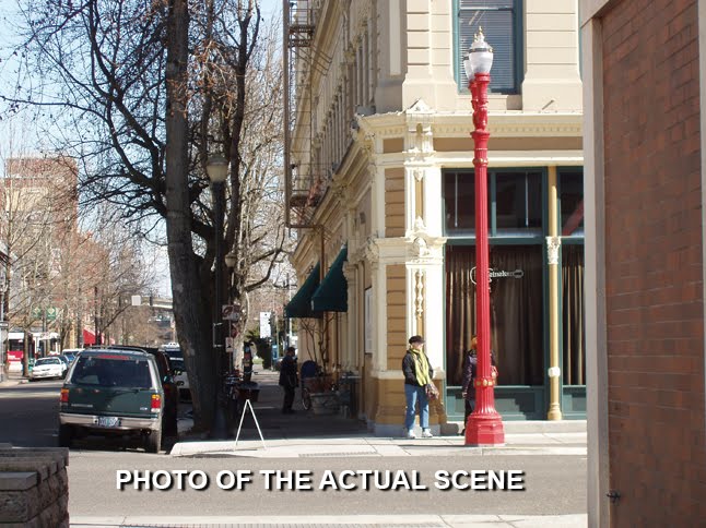 I sometimes enjoy playing with urban scenes like this as a break from the pristine plein air landscapes I usually paint. I was particularly pleased with this one and decided to include a photo of the scene along with my interpretation. Hope you like it.